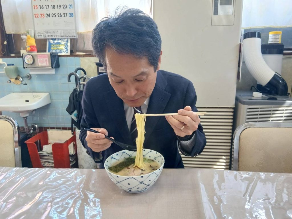 挨拶まわりのエネルギー源は、地元の豚骨ラーメン! -