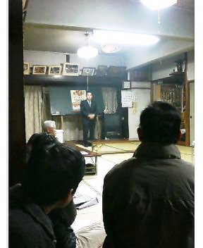 夕刻は、肥前通運労組の旗開きに参加したあと、夜は嬉野市内の公民館での寄り合いに参加させていただいてご挨拶。(写真)
