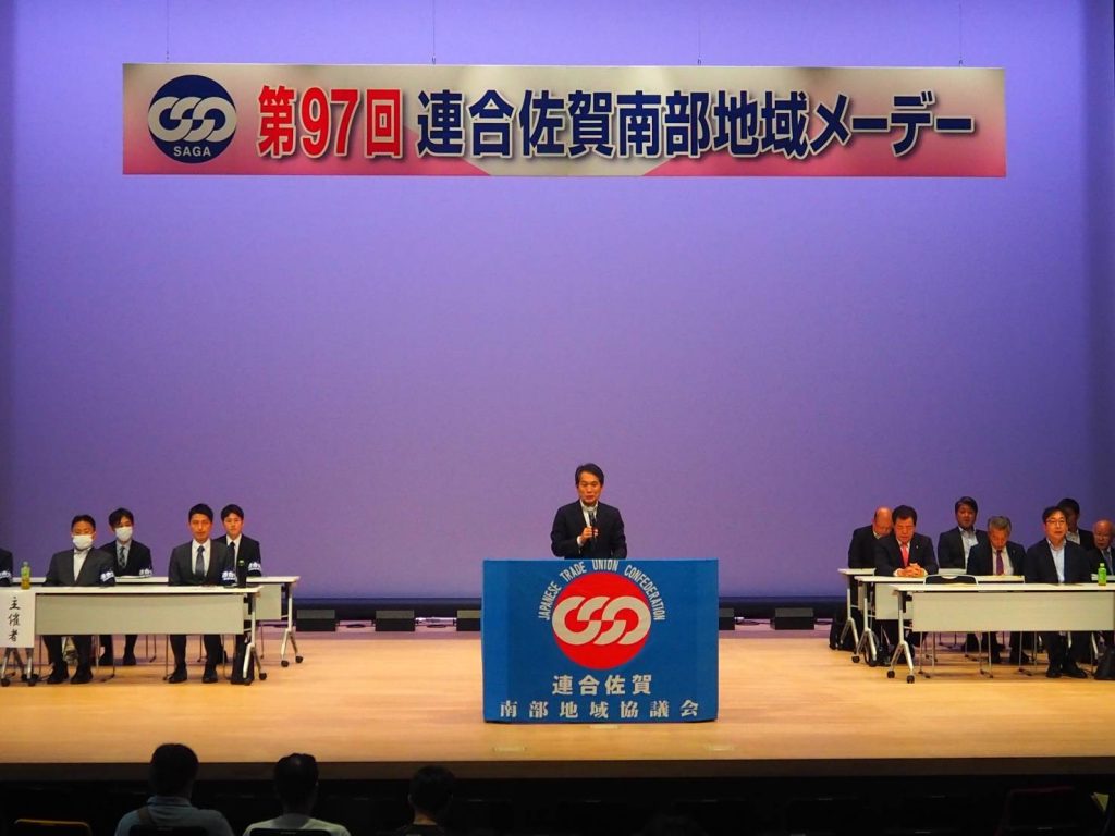 連合佐賀、南部地協、北部地協の春闘総決起集会に参加してご挨拶。物価高を超える力強い成果を期待し、支えていきます。 -