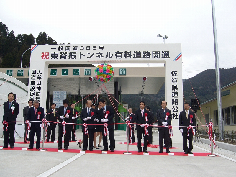 今日は、午前中、吉野ヶ里町で行われた、「一般国道385号 東脊振トンネル有料道路開通式」に参加してテープカット。(写真)