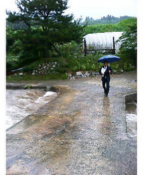まさに雨にも負けず、風にも負けず、増水した渓流の端もてくてく歩きながら(写真)の活動に、さすがに今日は大変疲れました。