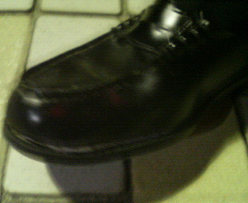 ところで、今日の国政報告会の時に、事務所スタッフの方の靴が、ぱっくり底の部分と甲の部分がはがれてしまっていることが判明。(写真:あまりよく見えないとは思いますが、手を触れてみると底の部分がはずれてきていることがよくわかります)