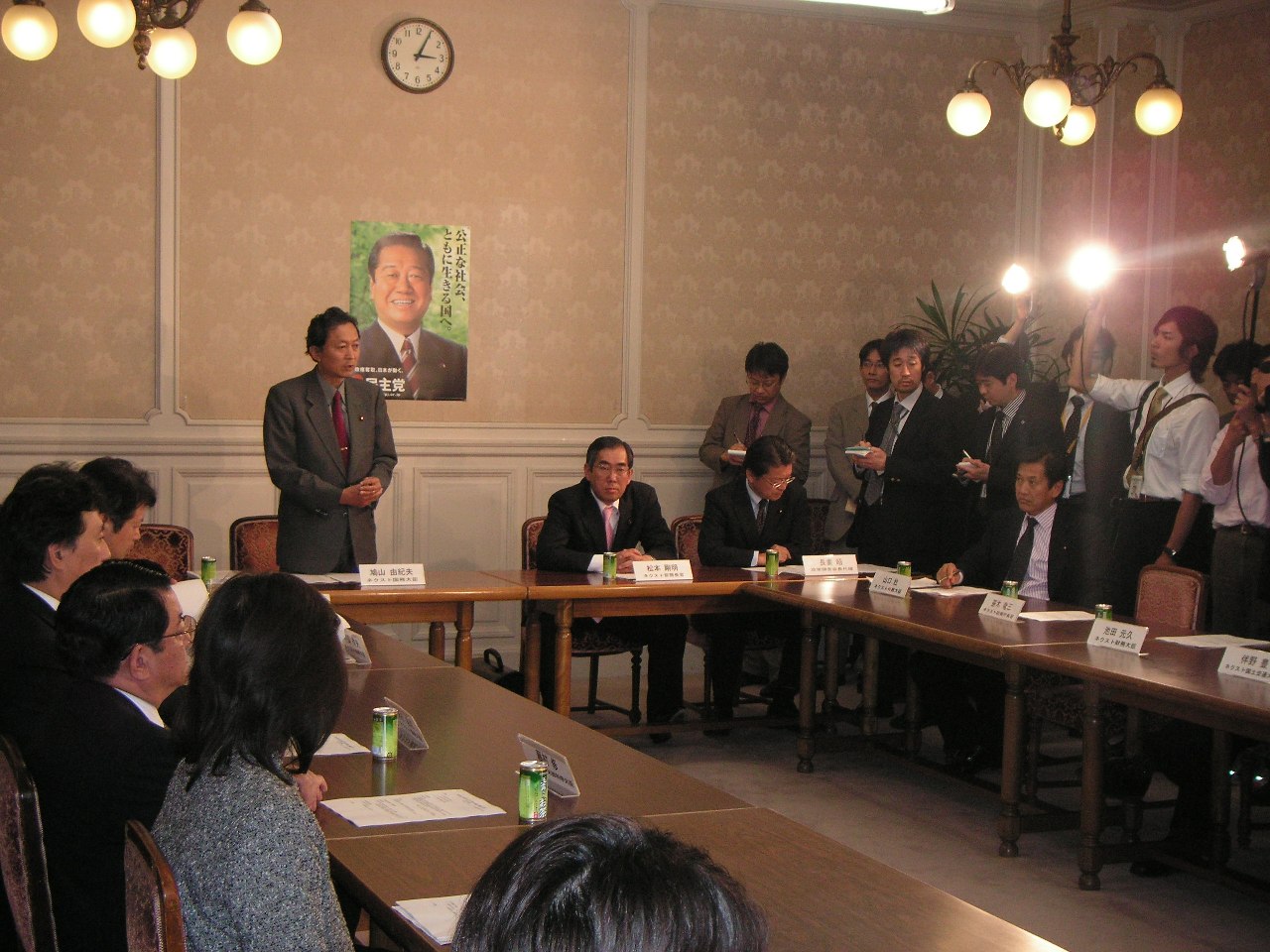 その後、党の「次の内閣」閣議に出席して(写真)、当面の国会での法案対応等について議論。夜はマスコミの方との懇談。