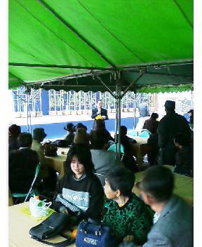 その後、白石町の身障者の福祉作業所「西部コロニー」の秋の恒例の収穫祭が開催されていたので、ここを訪れて皆さんにご挨拶(写真)。そこからさらに大町町に移動して、「ぼた山秋祭り」の会場を訪問して、町の皆さんにご挨拶しながらそこでお昼ご飯。