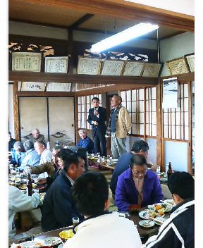 お昼時は、小城市に移動して、老人クラブの会合、地区のお祭りの場などにお招きいただいてご挨拶。(写真)