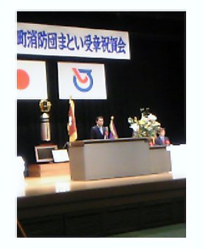 その後、白石町で開催された消防団の祝賀会に出席。白石町の消防団が、消防団にとって最高の栄誉たる、特別表彰「まとい」を今年受賞したのです。そのお祝いの席でした。(写真)