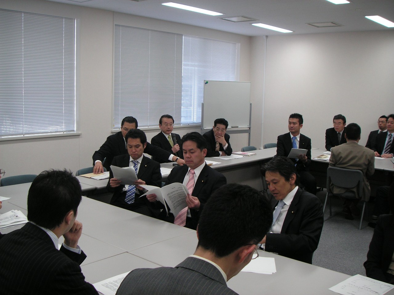 所信聴取、そしてその後の質疑を経て、民主党においては、午後の財務金融部門会議で議論が行われ(写真)、党としての意見集約を急ぎました。