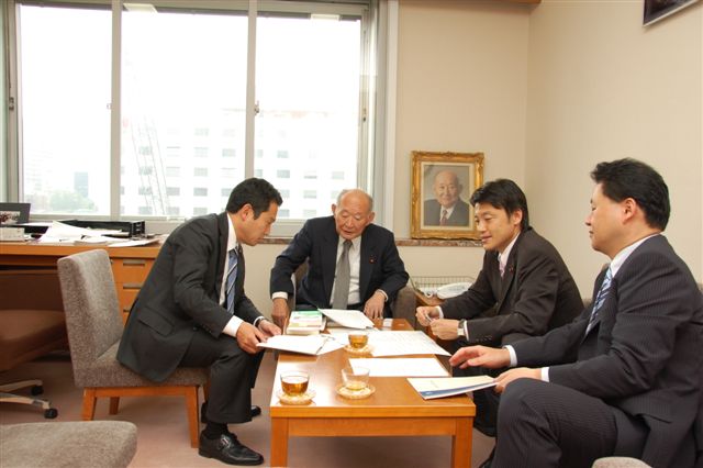 (写真は、藤井裕久党最高顧問と同僚議員との打ち合わせの模様。こんな風にして政策を作り上げていっているのです)