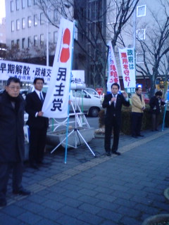 そんな思いを抱きながら、写真は、今日の夕刻、連合佐賀、民主党、社民党の合同で、「早期に解散総選挙で国民の信を問うべし」と訴える街頭活動を行ったときものです。