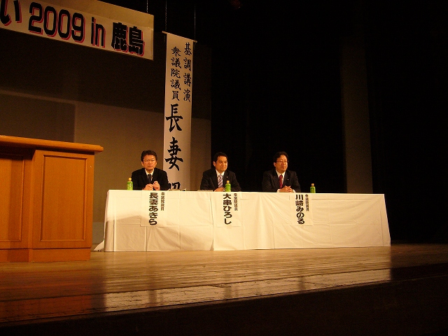 長妻議員も小沢代表の秘書の不祥事に対するお詫びから始められ、報道ステーションのコメンテーターで長妻氏が一番信頼する政治評論家(名前失念)の本を引用されて、大串議員の人となりを賞賛されていました。次に、国民の関心が高い年金の話を、朝日新聞の記事をひきあいに、25年ルールや、他の先進諸国の比較して遅れた年金制度といったシステム批判、118万人の無年金者問題(日本人には1円の給付も無いのに自治体の判断による在日朝鮮、韓国人に支給されている福祉給付金の批判をしろよって思いました)、消えた年金問題でしたね。それと、社会保険庁職員の無責任さ、怠慢さ、を批判する内容でお話されていました。(監督責任は与党に有っても、実行犯は怠慢な職員だろうよ!)