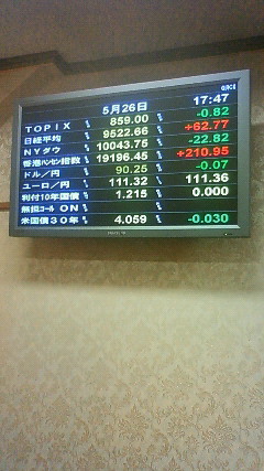 政務官室で執務をしている間中、部屋の中にある、金融市場の様子を示すボードから目が離せません。日本をはじめ世界の株価、為替、金利・・・・・全ての指標に常に注目です。