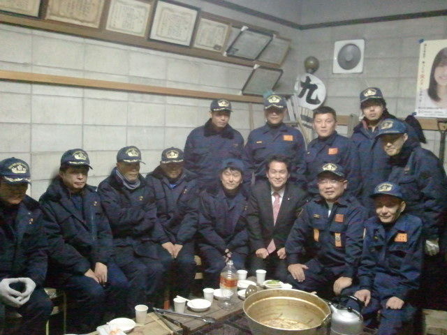 若手消防団の皆さんを激励しながら、そのかたわら民主党に対して厳しい声ももちろんですが、激励の声もいただきます。「大串さん、ブログ見よるよ。毎日大変ね」と言ってくださる方もいらっしゃいました。これを励みに、来年も頑張ろうと心に刻みます。(これまた毎年恒例の消防団の皆さんの写真を添付します)