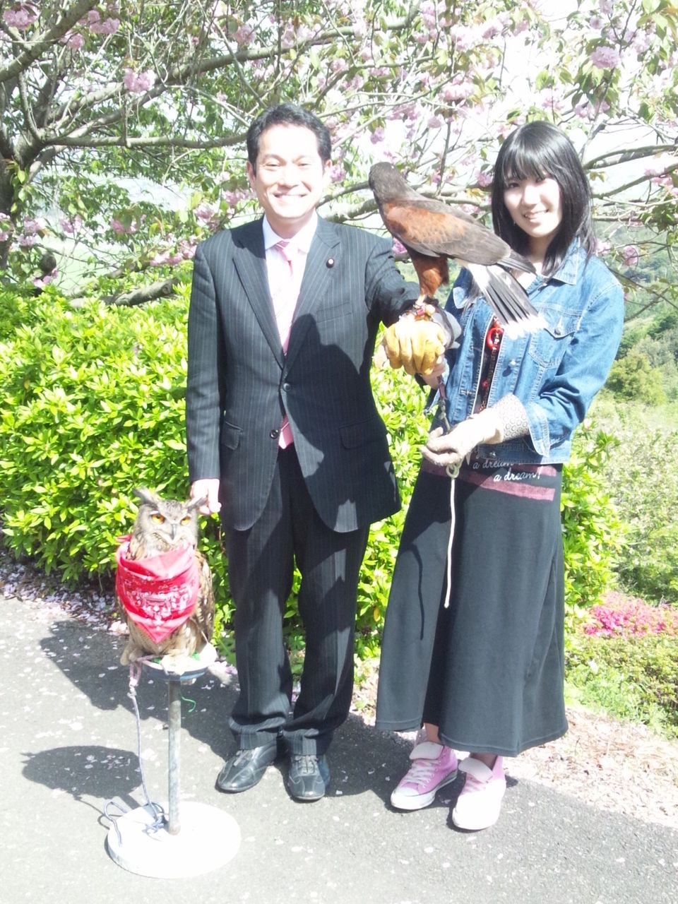 (写真は、今日地元でのお祭りで出会った、地元の高校生「鷹匠」石橋さんとの写真。高校生でありかつ意欲あふれる優秀な鷹匠の彼女。頑張ってもらいたいと思います。)