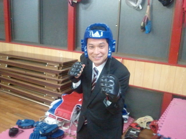 「民主党、今叩かれているから、打たれ強くいけ」と声をかけてくださる方がいらっしゃいました。それでヘッドギアなどをつけてパチリ。