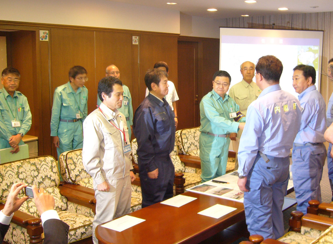 今日、先の集中豪雨災害との関係で、野田総理が九州を視察し、その最後に佐賀県にも立ち寄った上で、古川知事から佐賀県における被害の状況の報告を受け、また古川知事からは県としての災害対応要望を伝えました。県連からは、私と原口代議士が同席しました。