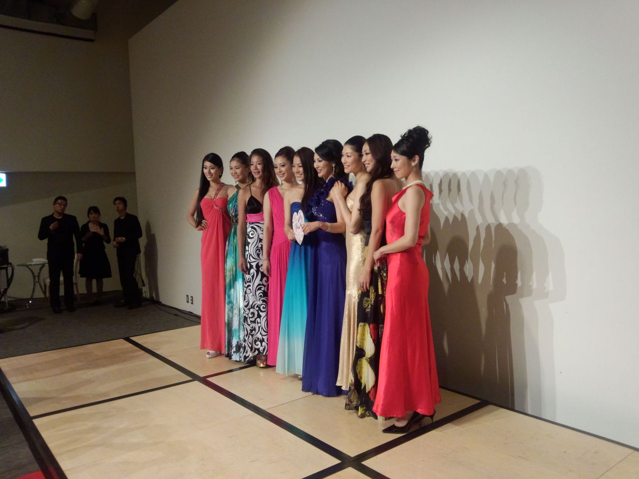 (写真は、歴代のミス代表の方々が勢ぞろいのものですが、真ん中の紺のドレスが育美さんです)
