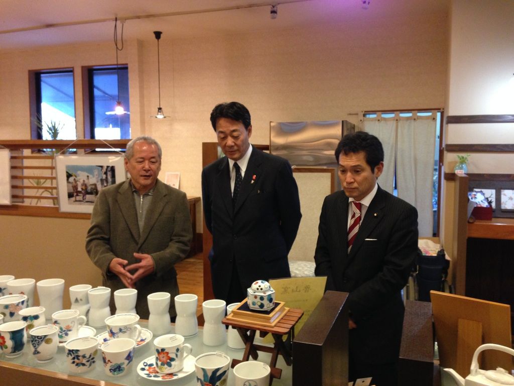 海江田代表、伊万里焼に触れる 2013 12/02 政治一般 2013年12月2日 今日の午前中は、海江田代表が伊万里市大川内山の伊万里焼を見学。これに随行しました。 佐賀鍋島藩の藩窯として歴史を刻んできた大川内山の伊万里焼。組合の皆さんから窯業をめぐる現状、課題などをお伺いしながら、歴史の重さ、その技術の高さを感じました。 世界からも評価の高い日本の伝統工芸を、どのようにして後代に受け継いでいくか、窯元の皆さんのご苦労は並大抵ではありません。 クールジャパン戦略における発信など、政治の世界でできることを私たち自身もとりくんでいくことをお約束しました。 政治一般 よかったらシェアしてね! URLをコピーしました! URLをコピーしました! デモとテロは本質的に変わらないのか TPP・・・年内合意はなるのか この記事を書いた人 hiroshi_fromsaga 関連記事 石破新総裁、すでに発言のブレが見える 2024年9月27日 なぜ深圳での事件は起こったのか、中国当局は情報の開示を 2024年9月19日 安倍総理と旧統一教会幹部との面会写真、総裁候補は考えを語るべき 2024年9月17日 兵庫県知事の問題…維新と自民党の責任は重い 2024年9月14日 自民党総裁選候補、表紙を変えても自民党はやはり変わらない 2024年9月12日 進次郎氏の言う「早期解散」、国会での論戦から逃げるのか 2024年9月6日 茂木総裁候補の驚きの発言 2024年9月4日 麻生派は、裏金の証言に対して厳しく説明責任を問われる 2024年9月2日