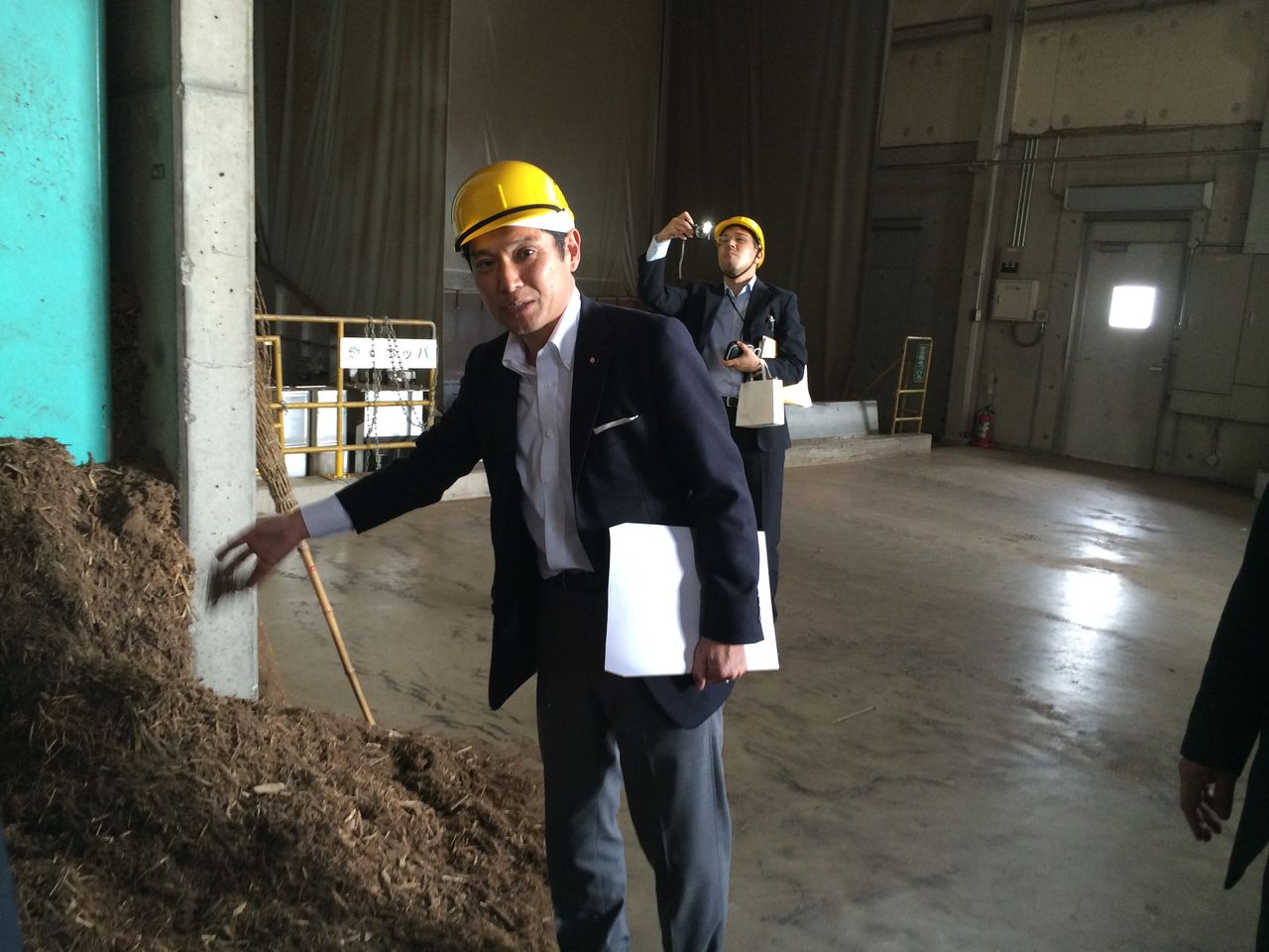 視察したのは、まず間伐材などチップ化した資源を有効活用して熱利用を行っている「松阪木質バイオマス熱利用協同組合」の施設。