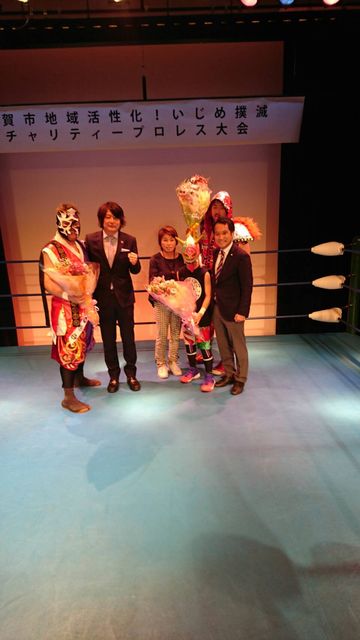 いじめ撲滅チャリティープロレス大会 2018 5/05 後援会活動 2018年5月5日 プロレスラー将火怒(まさかど)さんが率いるレスラーの皆さんによる、「いじめ撲滅チャリティープロレス大会」を激励してきました。 この数年間、将火怒さんは、小城市での同様の「いじめ撲滅チャリティープロレス大会」を皮切りに、佐賀県内各地で開催してきました。 リング上では激しい戦いぶり。子供達も熱狂して観戦。その中で「いじめはダメ!」と力強いメッセージ。 子供達の心に届いてくれたと思います。 後援会活動 よかったらシェアしてね! URLをコピーしました! URLをコピーしました! 焼き物三昧 ゴールデンウィークを終えて明日に臨む この記事を書いた人 hiroshi_fromsaga 関連記事 後援会のテンション、上がる 2024年9月28日 各地で国政座談会を開催 2024年9月22日 ストライク! 2024年8月4日 各地の「大志会」をさらに盛んに 2024年2月11日 行事を通じて地域を見守る 2023年10月29日 東京大志会の勉強会を開催しました 2023年8月22日 栁澤協二氏に学ぶ、いかにして戦争を起こさせないかの努力を 2023年4月26日 酒井ゆきもりさんの事務所開き 2023年3月4日